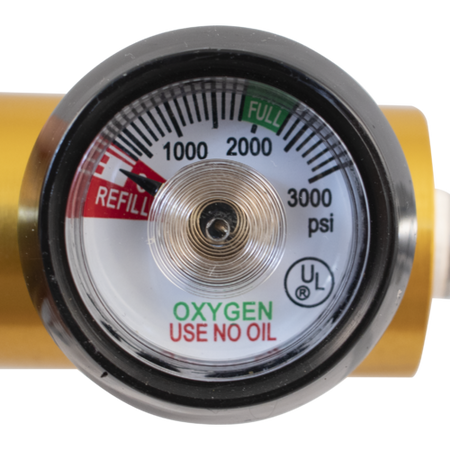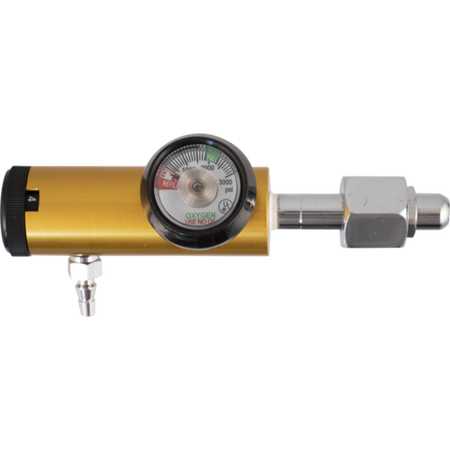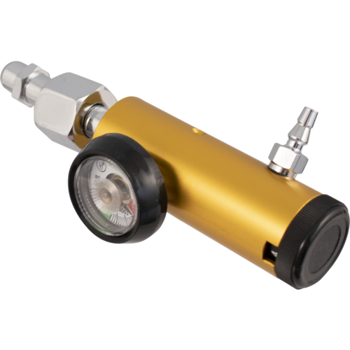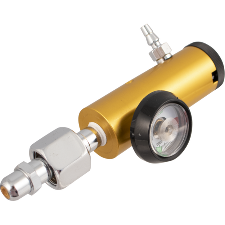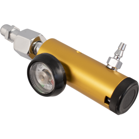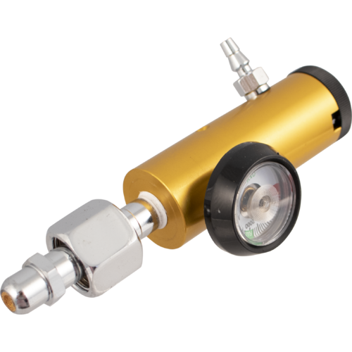 Mini oxygen regulator with integrate gauge for beverage applications. Use with a refillable O2 cylinder to oxgenate wort before pitching yeast.