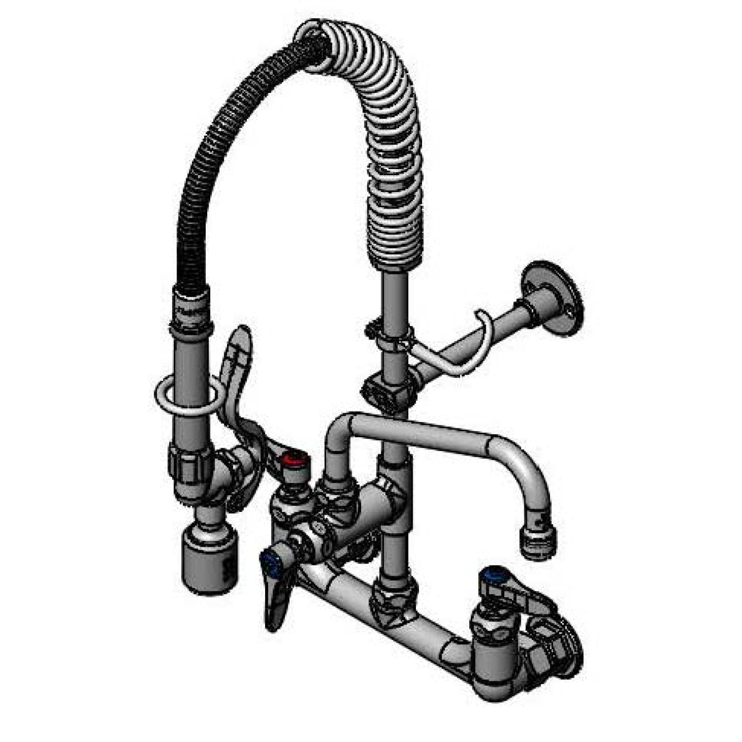Mini PRU 8" Wall Mount Faucet w/ B-0107-C, 8" Swivel Nozzle, Lever Handles, & Wall Bracket Mini Pre-Rinse