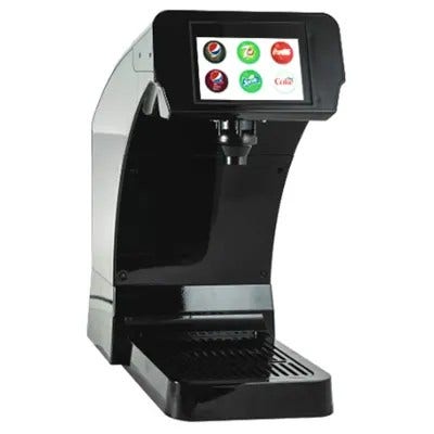 Mustang counter top dispenser with drain, no rear screen, serves 8 base beverages and 0 flavor shots at 2 oz/sec flow rate. It is plumbed as a standard bar gun, and has recirculation capability. There is a USB port for updates and it is ADA compliant. 8"W x 12.25"D.