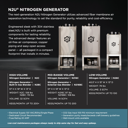 Engineered sleek with 304 stainless steel, N2U is built with premium components for lasting reliability. The advanced design features an oil-free air compressor, copper piping and easy-open access panel — all packaged in a compact footprint that installs in minutes.