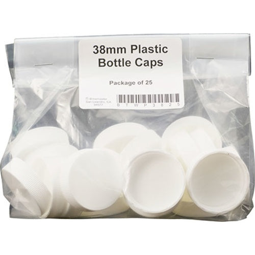 Plastic screw caps for growlers and wine jugs. Standard 38 mm size (38/400 thread) for growlers, 1/2 gallon, 1 gallon, and 4 Liter wine jugs. White color with foam liner.
