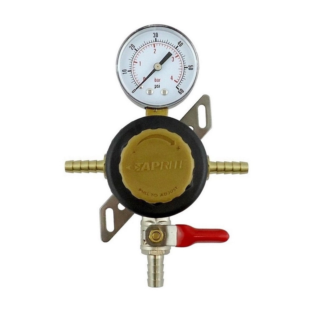 Taprite Secondary and Nitrogen Type: Pass Thru Gauges: 60 lb. & 1/4" Barbs Outlets: 5/16" Barb Shutoff (w/check valve) Not finding what you want? Foxx Equipment can assemble any regulator configuration you need. Call your sales rep for pricing.