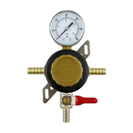 Taprite Secondary and Nitrogen Type: Pass Thru Gauges: 60 lb. & 5/16" Barbs Outlets: 5/16" Barb Shutoff (w/check valve) Not finding what you want? Foxx Equipment can assemble any regulator configuration you need. Call your sales rep for pricing.