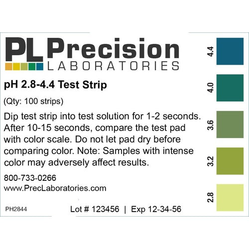 pH Paper - 2.8 to 4.4 For Wine - Vial of 100 Strips