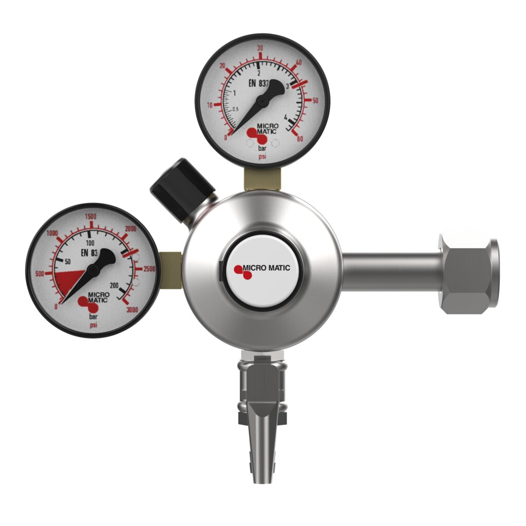 Get precision performance and superior reliability with the Micro Matic Premium Plus CO2 Regulator, built for low-pressure draft beer dispensing systems. Featuring a dual gauge for monitoring both keg output pressure and tank CO2 levels, this regulator is designed for exact carbonation control from 0 to 60 PSI. The integrated check valve ensures backflow prevention, enhancing beverage safety and system longevity. Constructed from heavy-duty chrome-plated brass, this regulator is the ideal choice for commercial bars, homebrew systems, and kegerators. Enjoy consistent, foam-free pours with trusted Micro Matic performance.