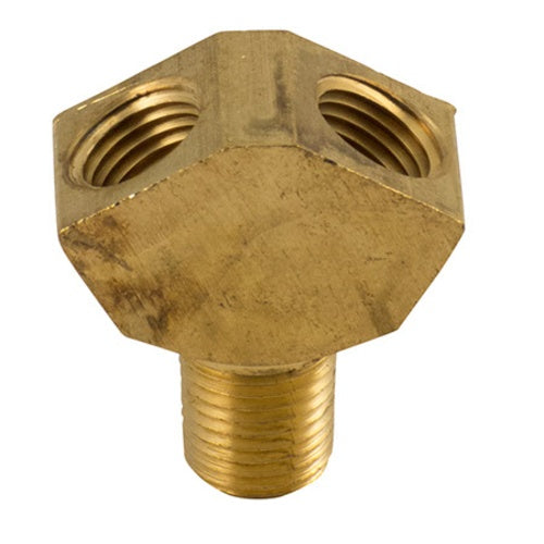 Make a single outlet regulator into a dual outlet reguator with this Y-fitting. Remove the shutoff from a regulator, add thread tape and screw the y fitting in tightly, then thread in two regulator outlet valves, D1120. You can now shut off 2 gas lines independently from one another to protect from leaks and cross contamination. 1/4MPT x 1/4FPT x 1/4FPT