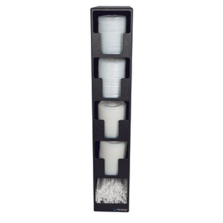 CFS Brands, L2204, San Jamar - EZ-Fit® Lid & Straw Tower, 5-1/2"L x 13"W x 30"H, countertop, contains (4) lid compartments and (1) straw compartment, polystyrene, black, NSF