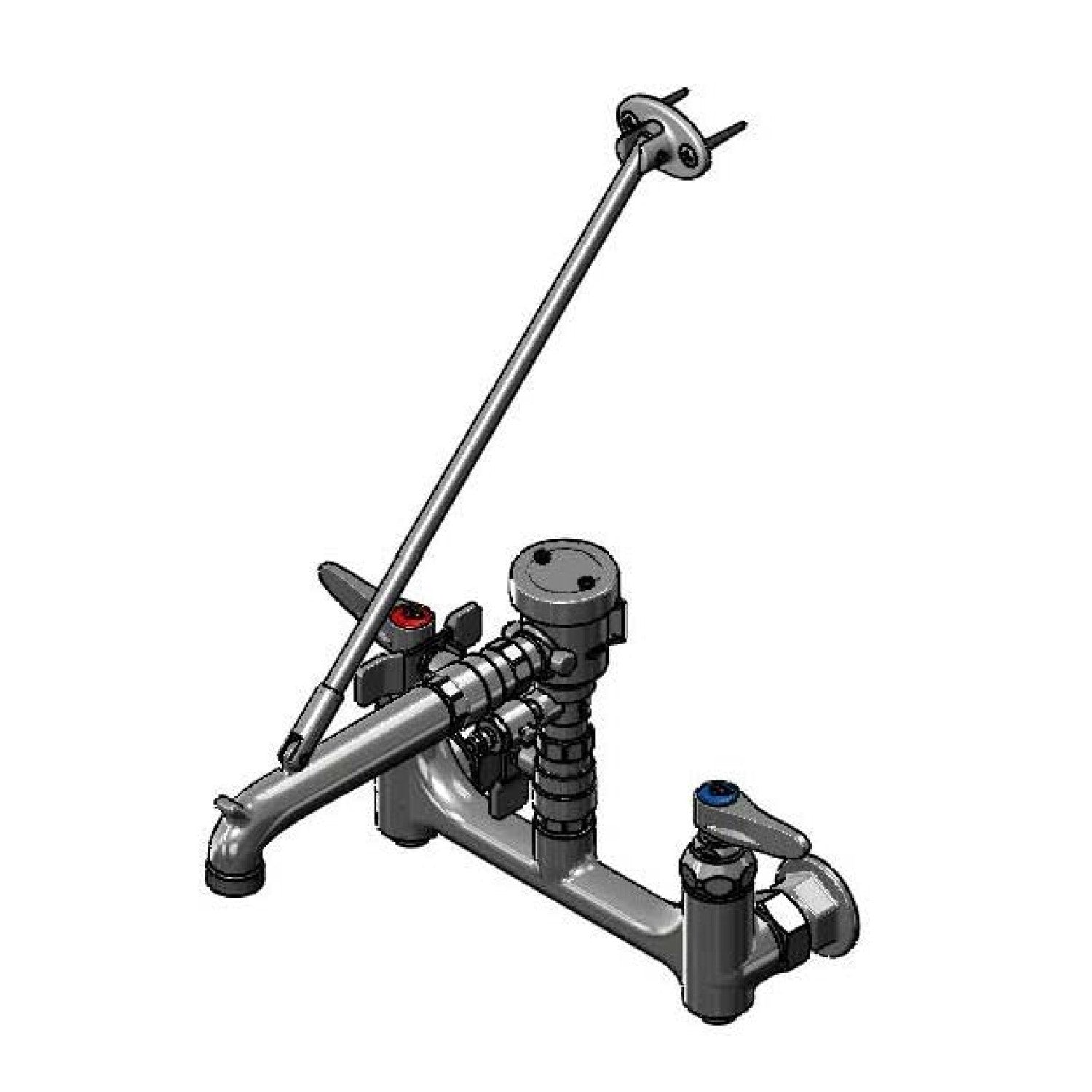Service Sink Faucet, 8" Wall Mount, Built-In Stops, B-0963 Vacuum Breaker Polished Chrome Finish