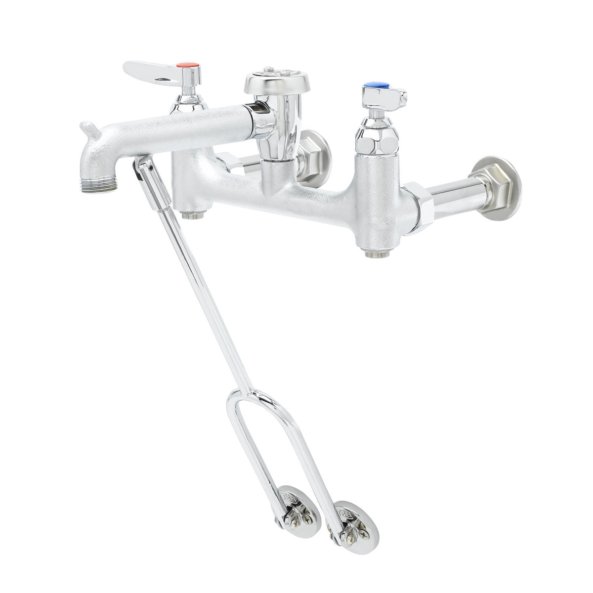 Service Sink Faucet, 8" Wall Mount, Built-In Stops, Vacuum Breaker, Rough Chrome