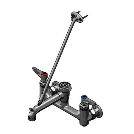 Service Sink Faucet, 8" Wall Mount, Ceramas, Lever Handles, Built-In Stops, Vacuum Breaker Polished-Chrome Finish