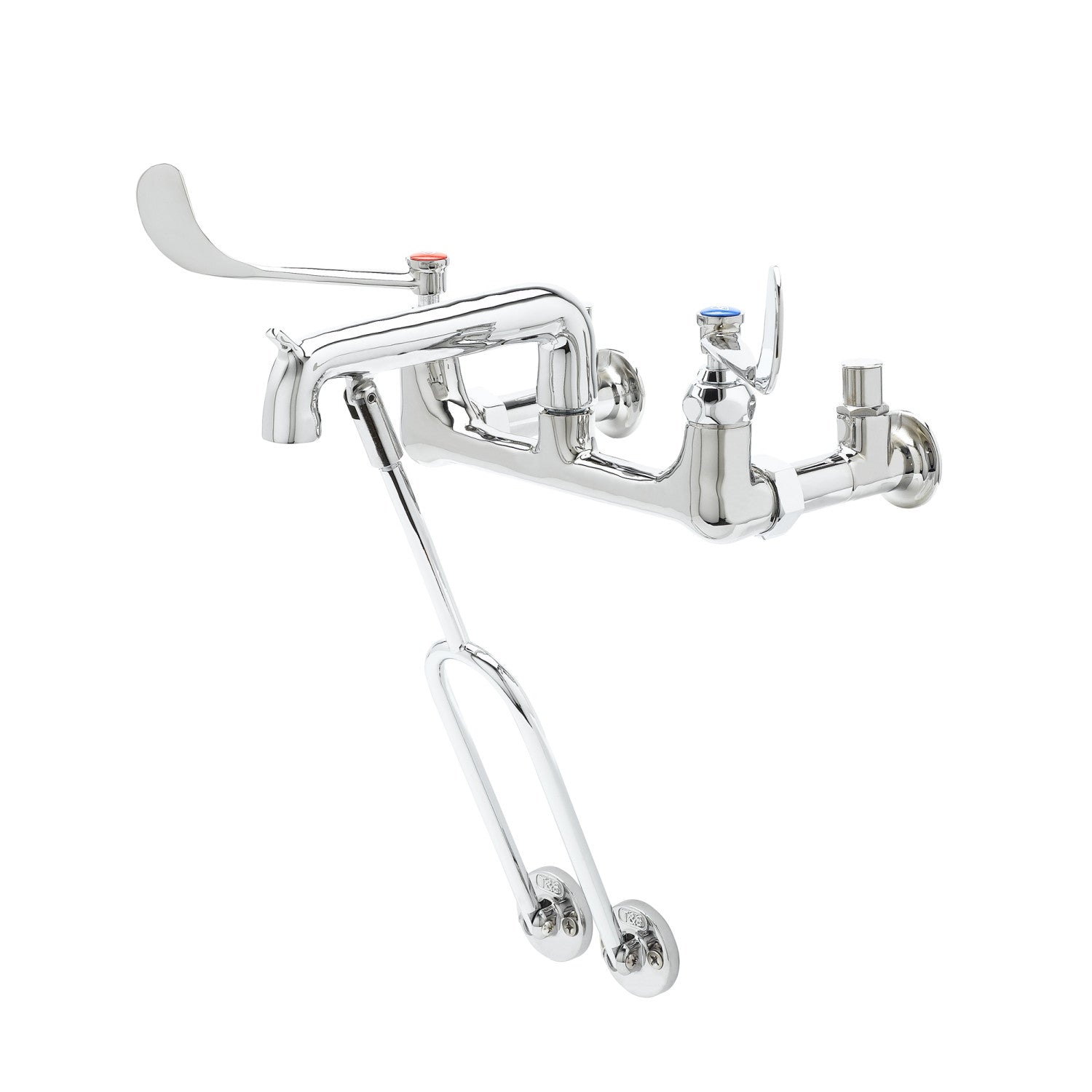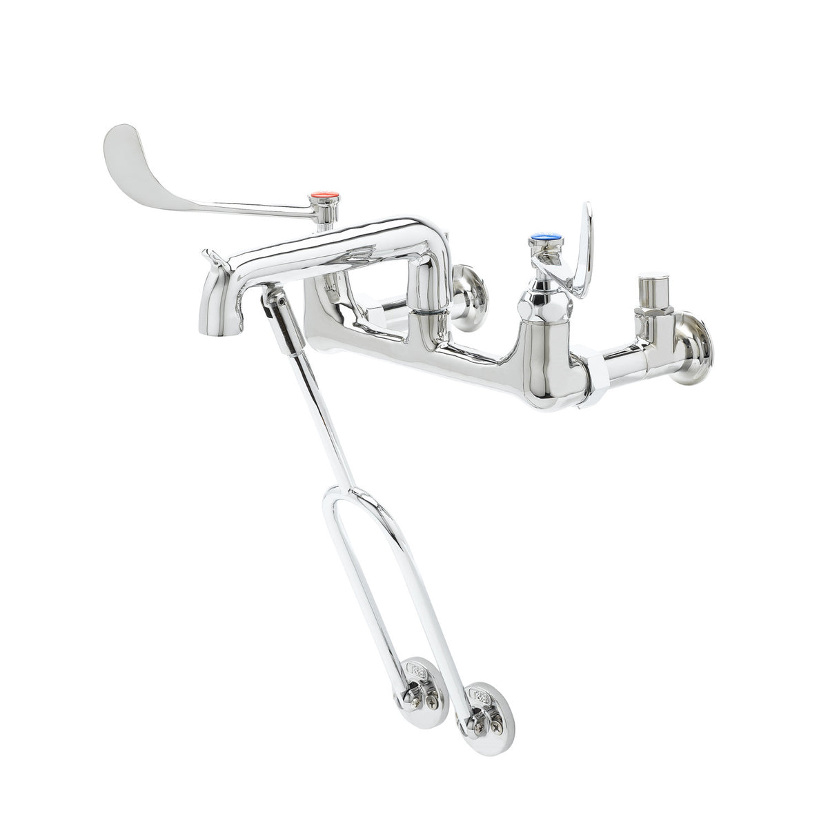 Service Sink Faucet, Wall Mount, 8" Centers, 6" Wrist Handles, Pail Hook, Integral Stops