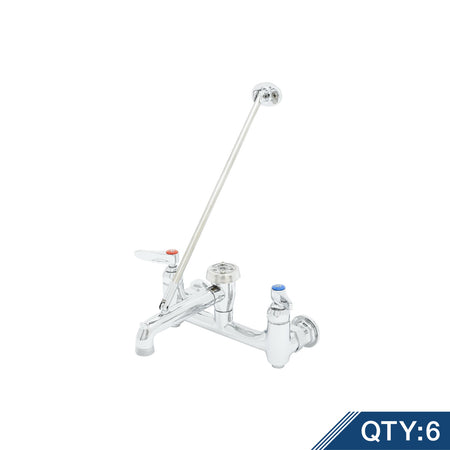 Service Sink Faucet, Wall Mount, 8" Centers, Built-In Stops, Vac. Breaker, Polish (Qty. 6)