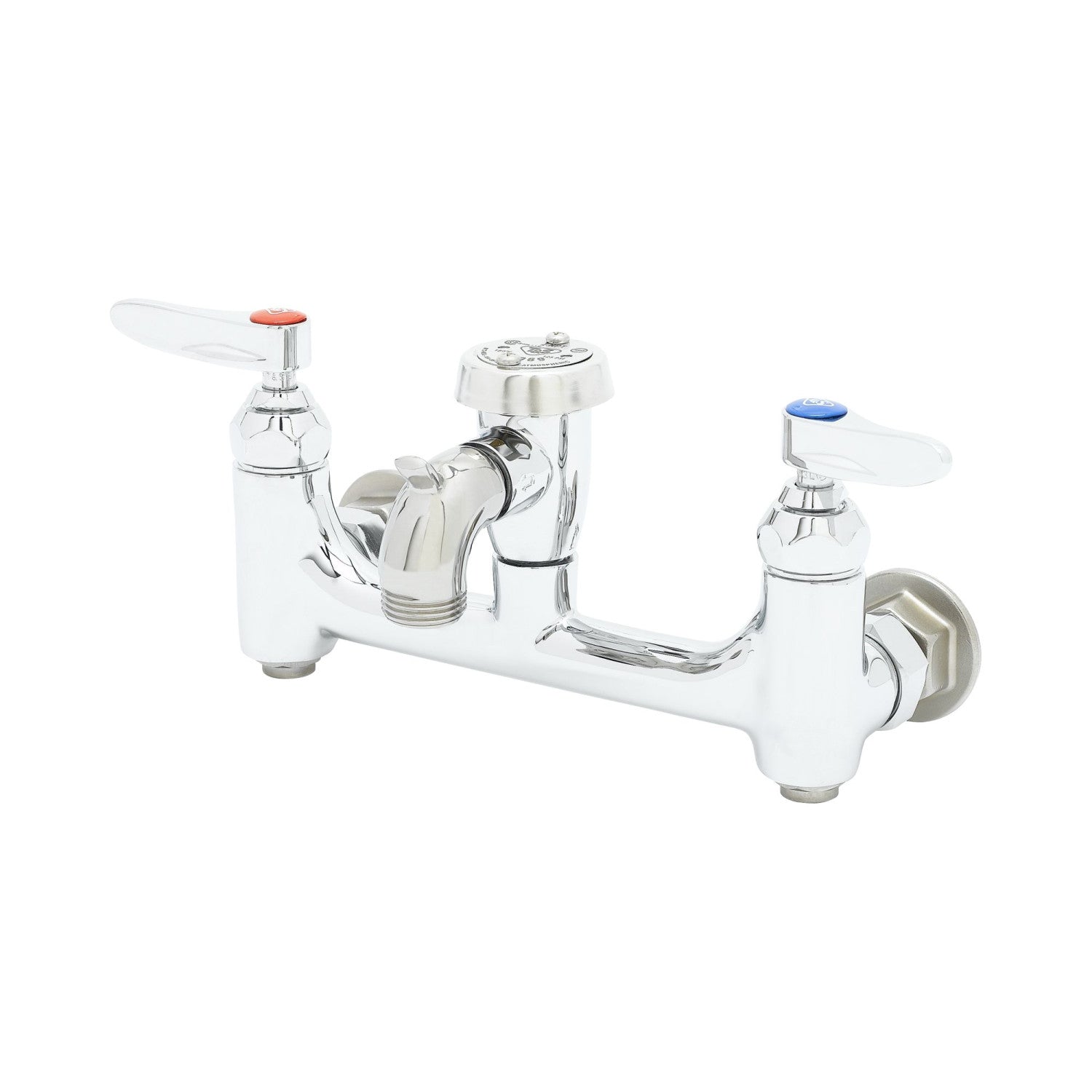 Service Sink Faucet, Wall Mount, 8" Centers, Vac. Breaker, Built-In Stops, Polished