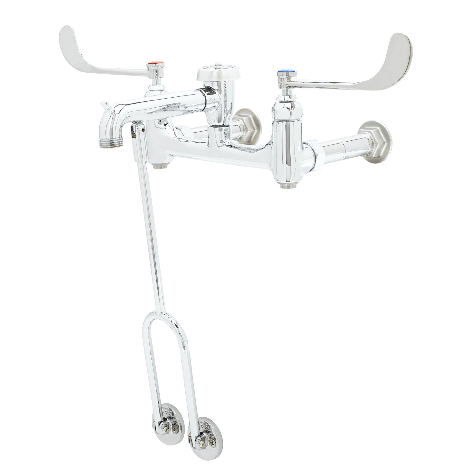 Service Sink Faucet, Wall Mount, 8" Centers, Vacuum Breaker, Built-In Stops, Wrist Handles