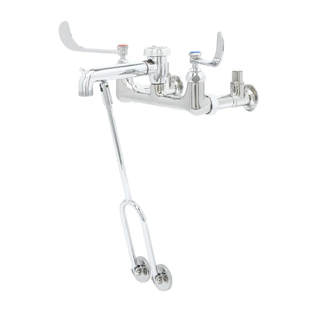 Service Sink Faucet, Wall Mount, 8" Centers, Vacuum Breaker, Integral Stops, Wrist Handles