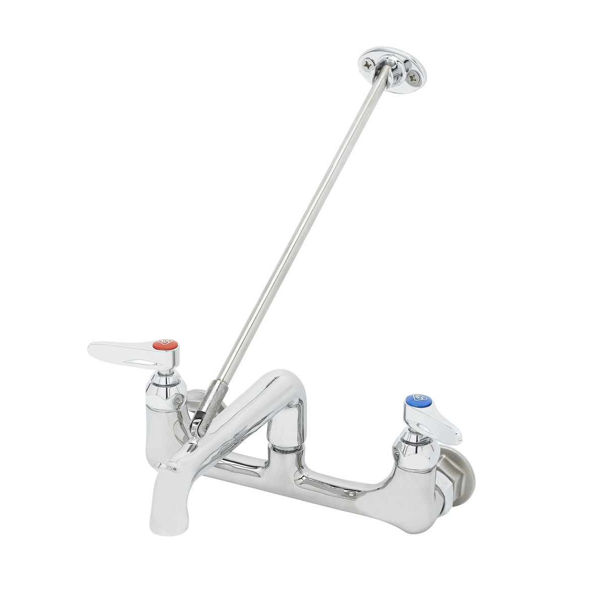 Service Sink Faucet, Wall Mount, 8" Centers, Wall Brace, Plain-End Outlet, Polished Finish