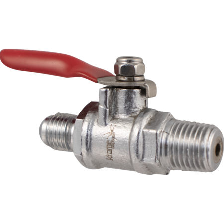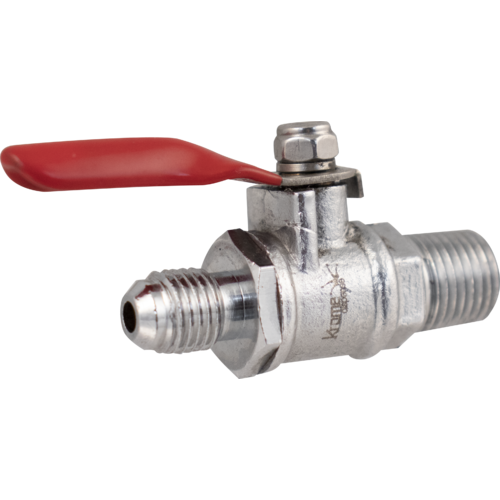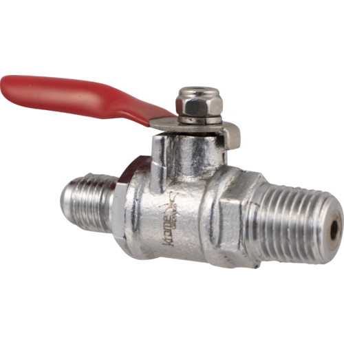 This shutoff valve can be used for multiple applications. Has a 1/4 in MPT thread on one side, this is commonly used in regulators, air distributors, and other keg system components. The out side has a 1/4 in MFL fitting for attaching a variety of flare fitting such as a barb ans swivel nut for gas lines. Includes a check valve, so gas can only flow in one direction, this can protect your regulator from accidential back up of beer.