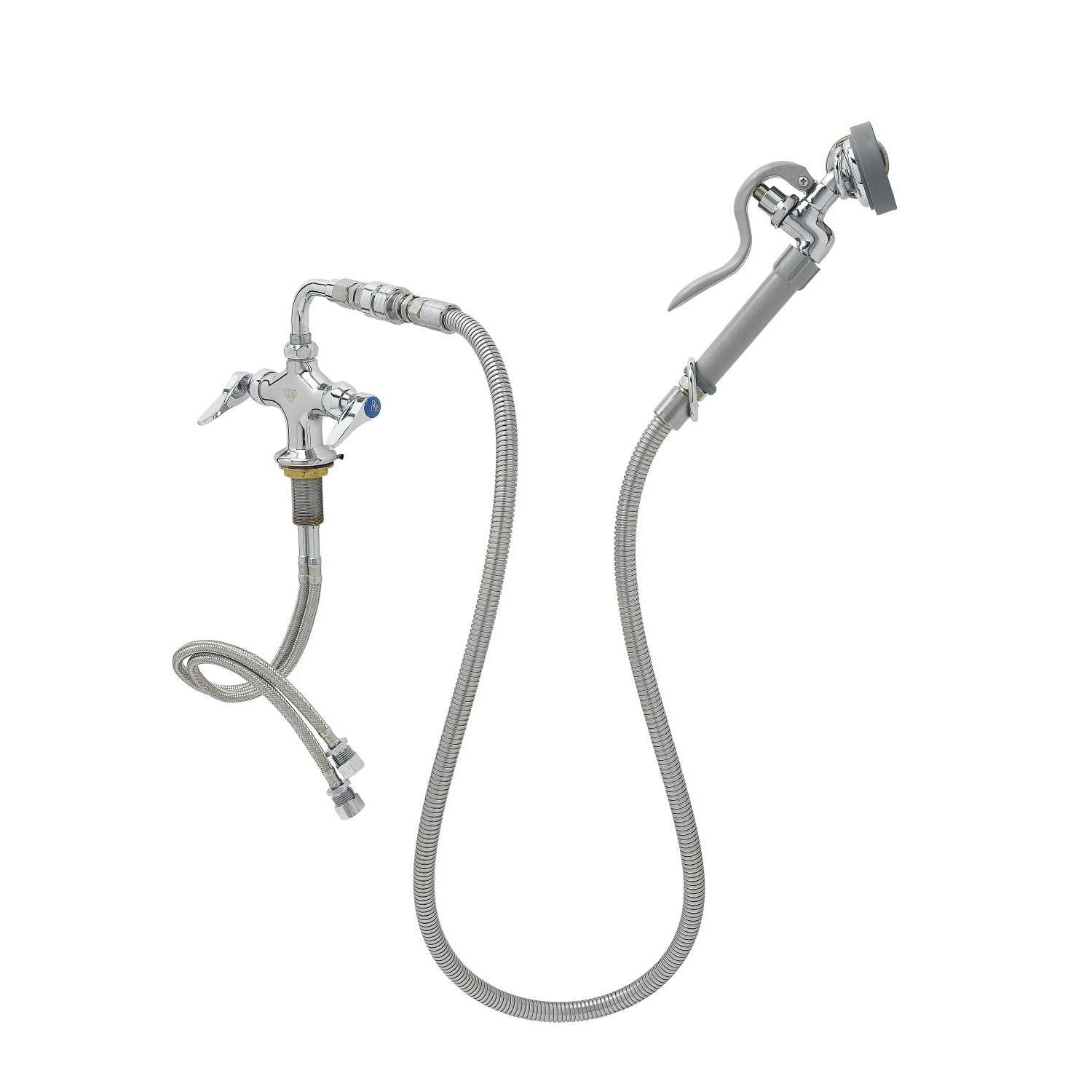 Single Hole Deck Mount Mixing Faucet, QT Eterna Cartridges w/ Spring Checks, 3/8" NPT Vacuum Breaker, 60" Flex Hose, 1.15 GPM Sray Valve & 1/" NPSM Male Inlets