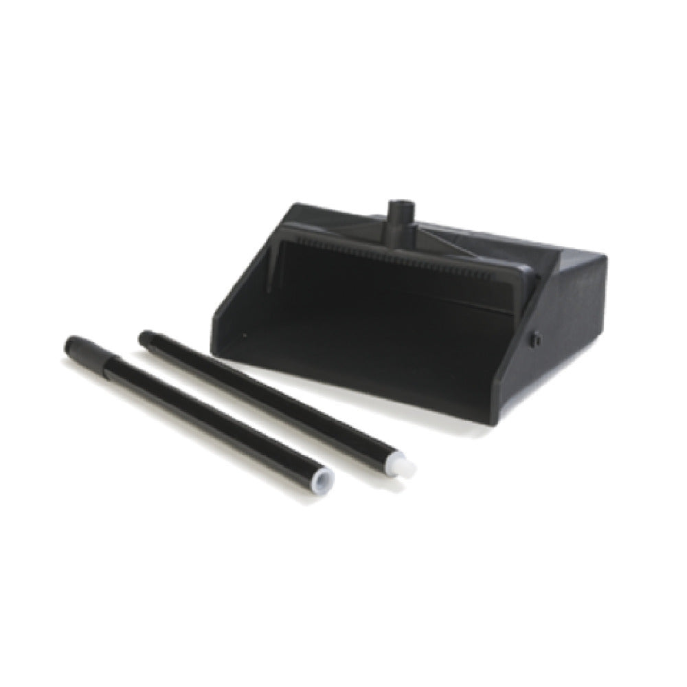 CFS Brands, 36142003, Carlisle - Lobby Dust Pan, 12" pan with serrated edge, 2-piece handle (30"), for use with 3686100,3685914 & 3686003, pivoting hang hole, black