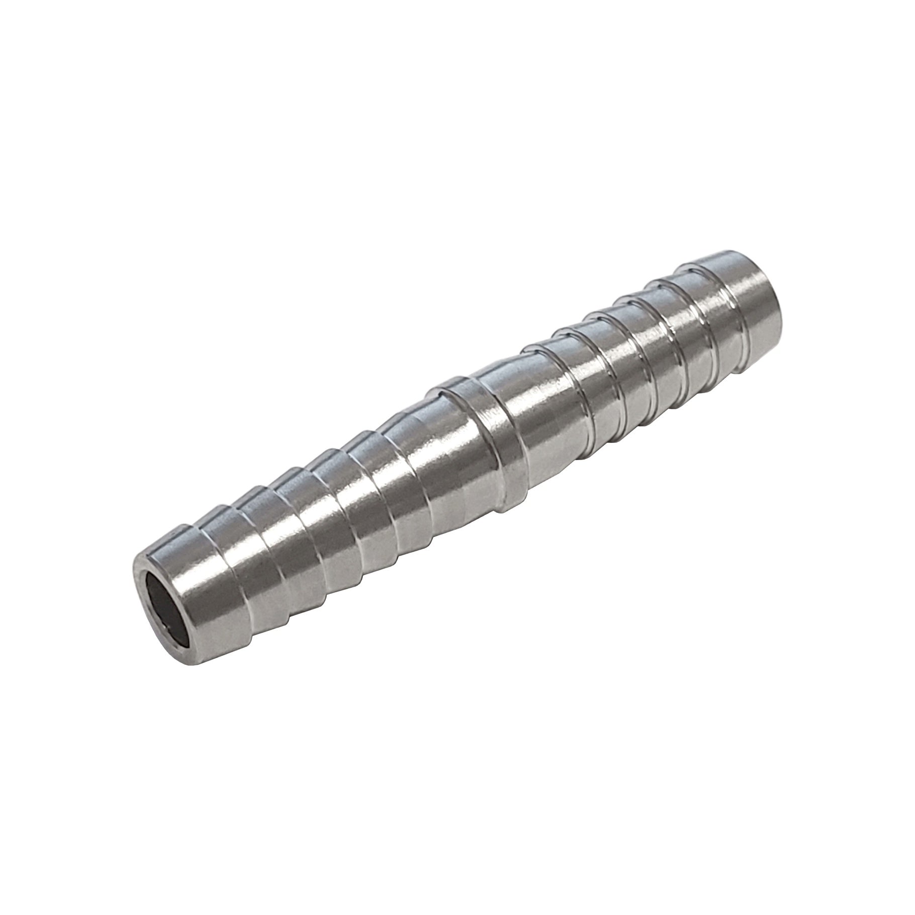 Stainless Steel Hose Barb FittingsSplicer - StraightTubing I.D. Size: 1/4" Vinyl Tubing: 3/16" 1/4" x 3/16" 1/4"Plastic Tubing: 1/4" x 1/4"Vi nyl to Plastic: 3/16" 1/4" x 1/4"