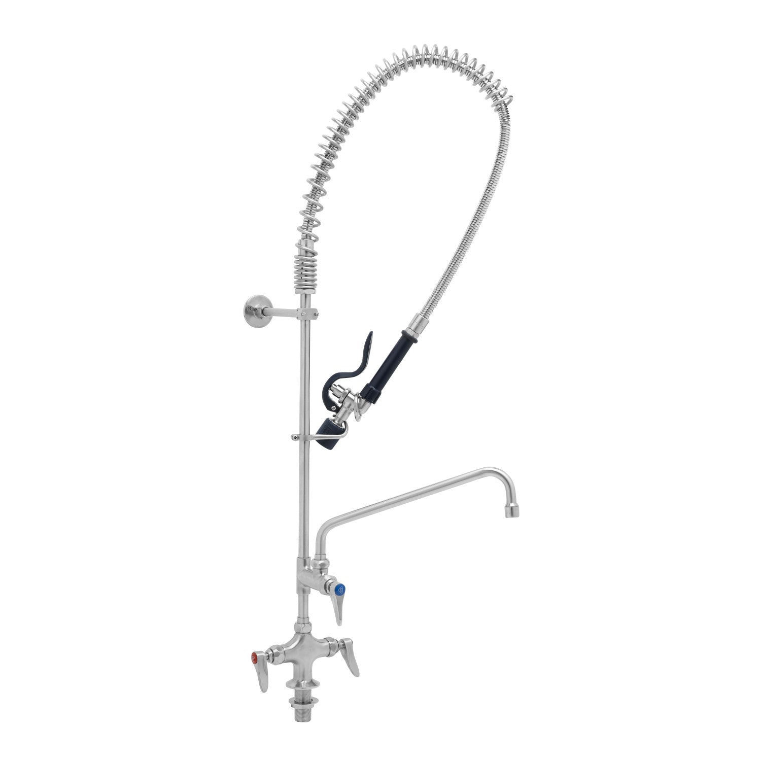 Stainless Steel EasyInstall Pre-Rinse, Single Hole Base, 12" Add-On Faucet, S-0107-J, Wall Bracket