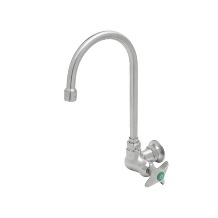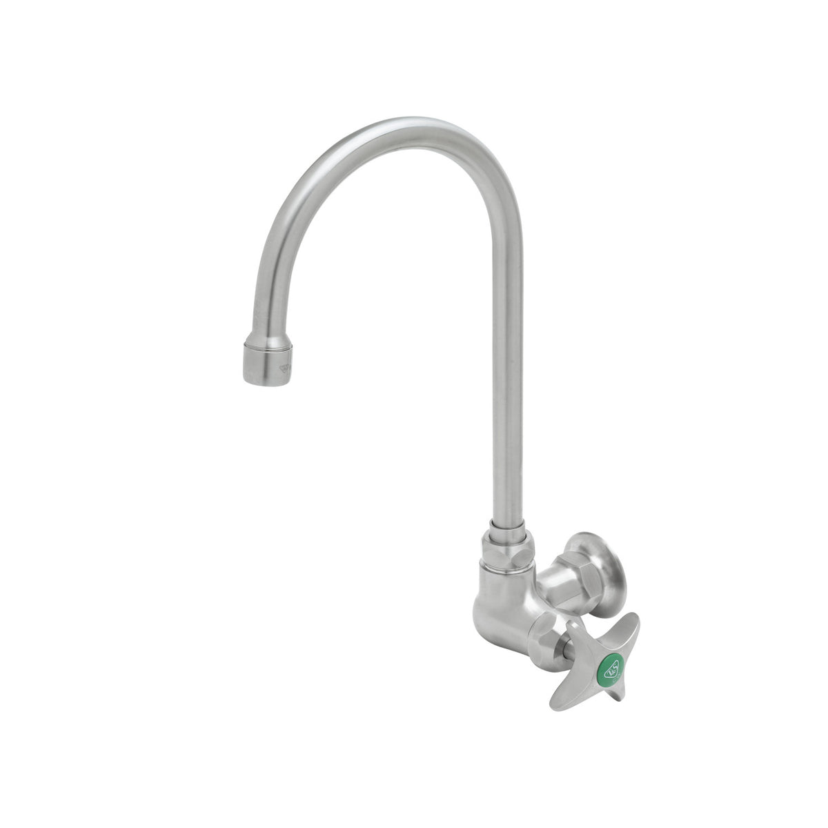 Stainless Steel Lab Single Temperature Wall Mount Faucet, Swivel/Rigid Gooseneck, Aerator, 4-Arm Handle