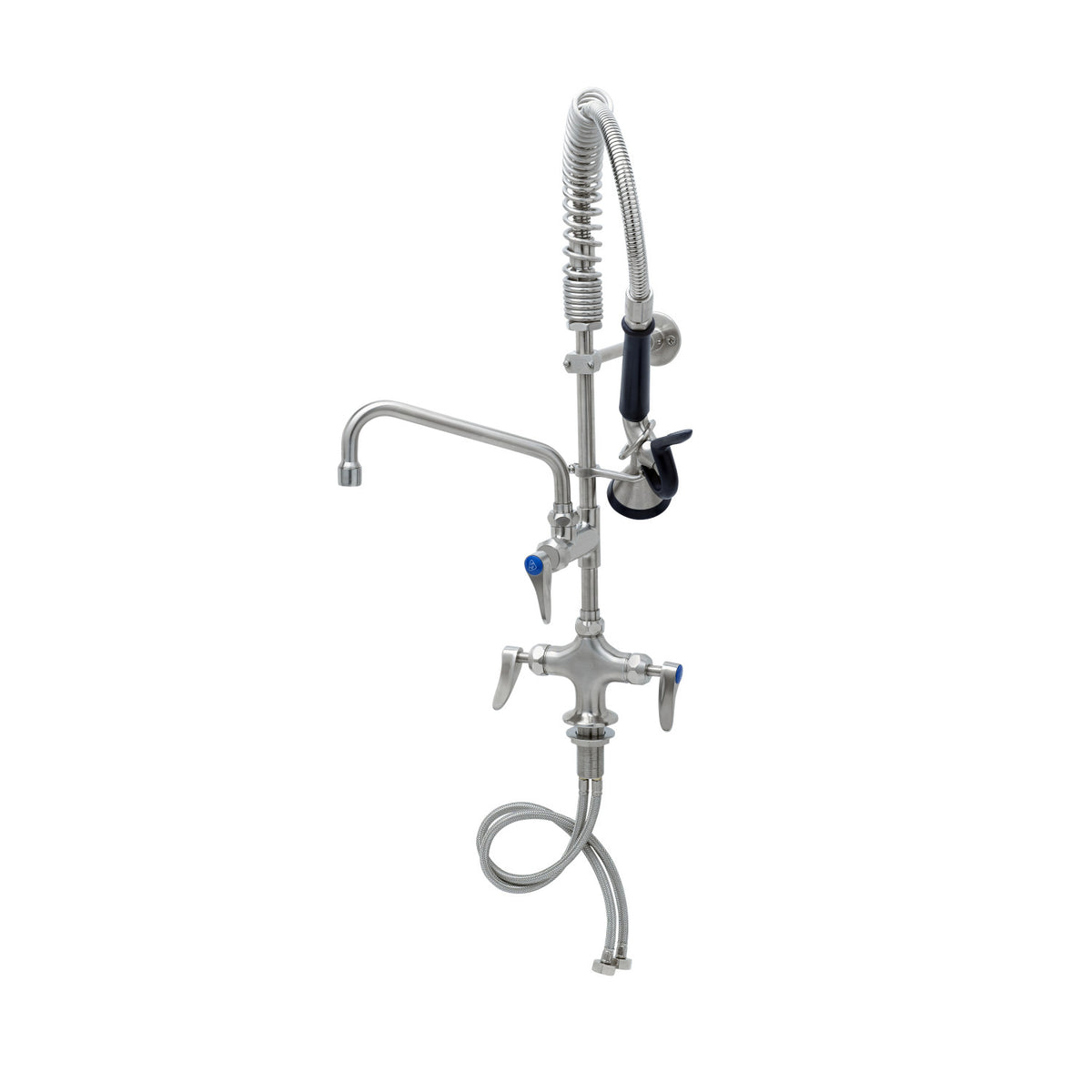 Stainless Steel Mini-Pre-Rinse unit with S-0107-Y, Single Hole Deck Mount Mixing Faucet with 8" Swing Nozzle, Lever Handles & 6" Wall Bracket