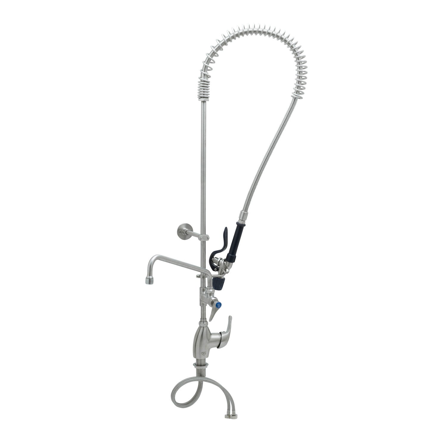 Stainless Steel Pre-Rinse unit with S-0107-C, Single Lever Deck Mount Faucet with 12" Swing Nozzle & 6" Wall Bracket