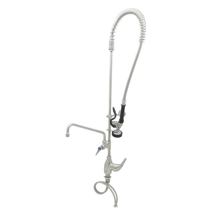 Stainless Steel Pre-Rinse unit with S-0107, Single Lever Deck Mount Faucet with 12" Swing Nozzle & 6" Wall Bracket