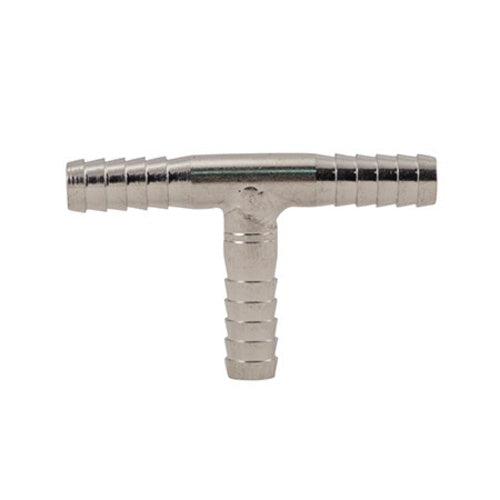 3 way stainless steel tee with 1/4 in barbed fittings.