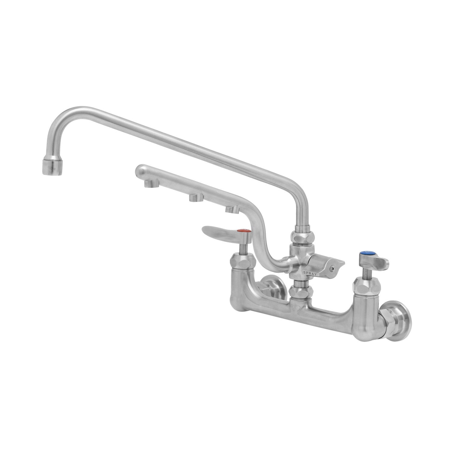 Stainless Steel ULTRARINSE Double Pantry Wall Mount Faucet, Quarter-Turn Ceramas w/ Check Valves, 8" Centers, 12" Swing Nozzle & 10" 1.5 GPM Sprayer Arm