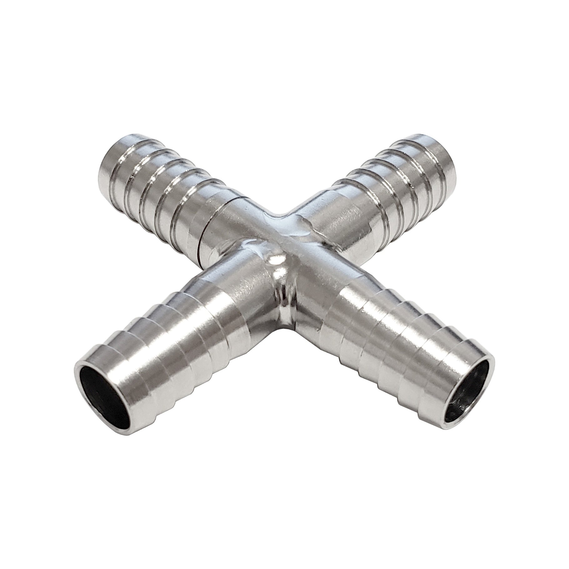 Stainless Steel Hose Barb FittingsCrossTubing I.D. Size: 3/8" Thinwall