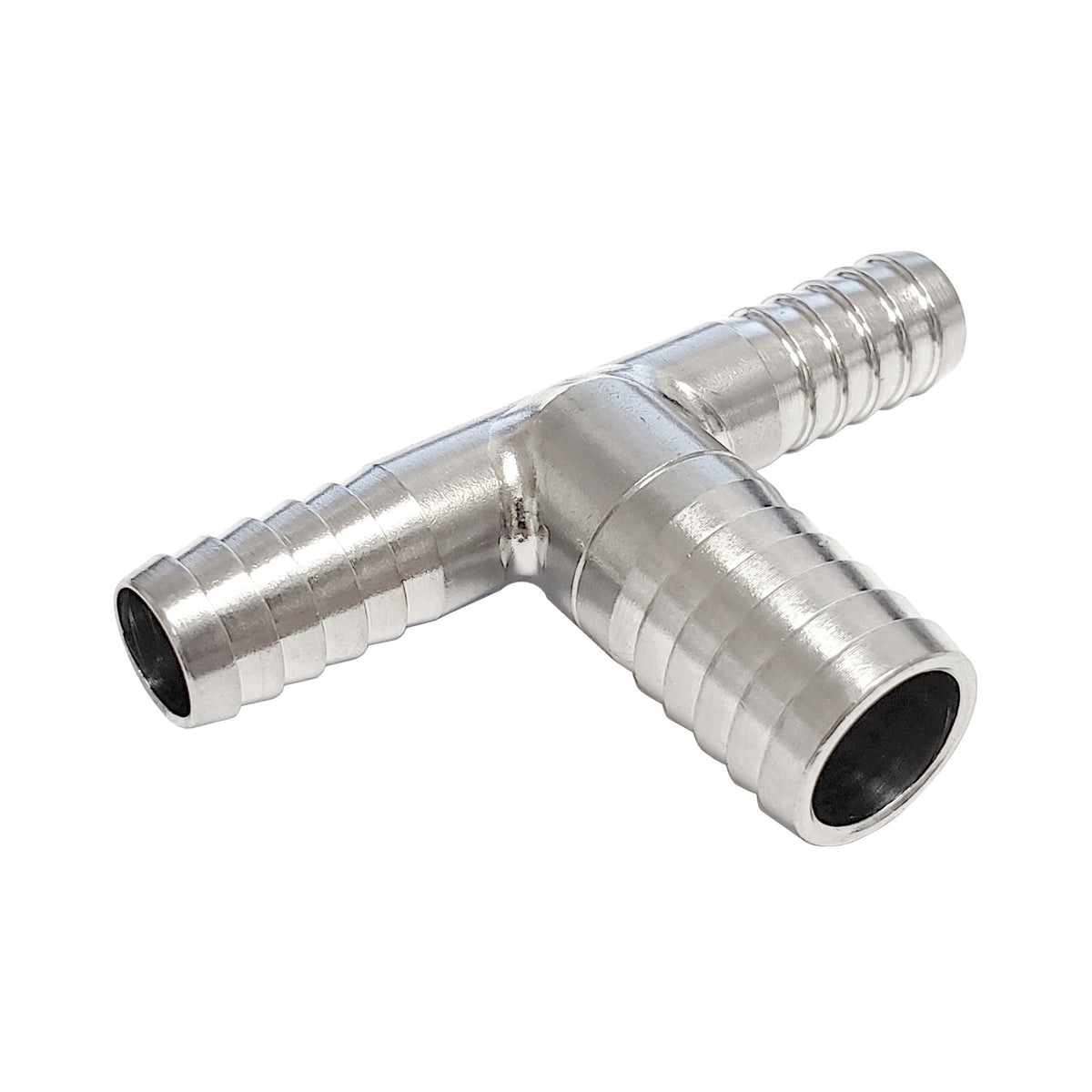 Stainless Steel Hose Barb FittingsTeeTubing I.D. Size: 3/8" (1&2) x 1/2" ( 3) Thinwall
