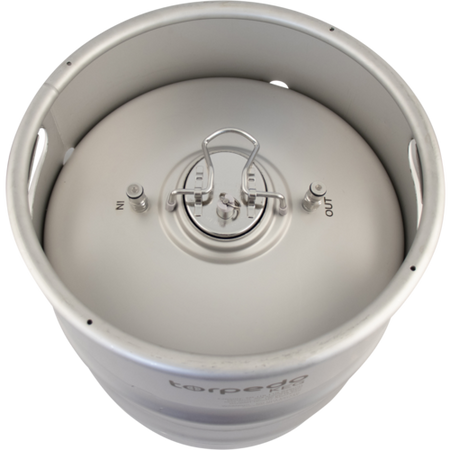Torpedo Kegs were designed to stack with Ball Lock quick disconnects in place and serving, which is a cool feature for some brewers who have vertical space in their refrigerator. We also like the rolled stainless steel handles. They are comfortable to grab and will never come off like some rubber handles can over time. In and Out is etched near the keg posts for easy identification, which is very handy when you are connecting lines in a refrigerator or kegerator and trying not to make a mistake.
