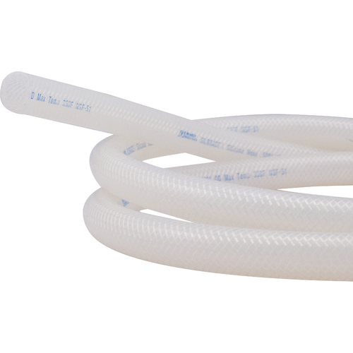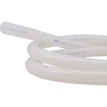 The construction of braided silicone enables the tubing to handle increased pressure applications. Reinforced silicone offers outstanding resistance to temperature extremes and is made from FDA-sanctioned ingredients. The flexible design and construction of this tubing allows excellent bend radii and permits installation in restricted spaces without impeding flow.