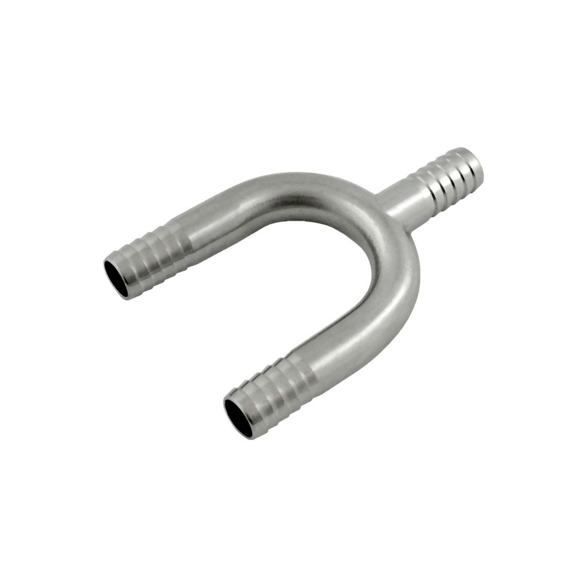 Stainless Steel Hose Barb FittingsU-Bend with ManifoldTwo Barbs to BarbTubing I.D. Size: 3/8 barbs X 3/8 barbs X 3/8 barbs