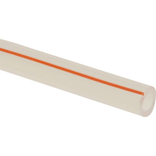 Ultra-Barrier(TM) Gas tubing from EJ Beverage is an excellent alternative to PVC. It is constructed of a unique compound that is PVC Free and BPA Free; it contains no DEHP phthalates or other plasticizers. This tubing is clear with a red stripe so you can identify it as a low pressure gas line. It does not emit dioxins and has extremely low extractables/leachables. This amazing tubing remains flexible at lower temps, has ultra-low permeability, and superior barrier properties. If you want a tubing that won't leach large amounts of chemicals, this is it!