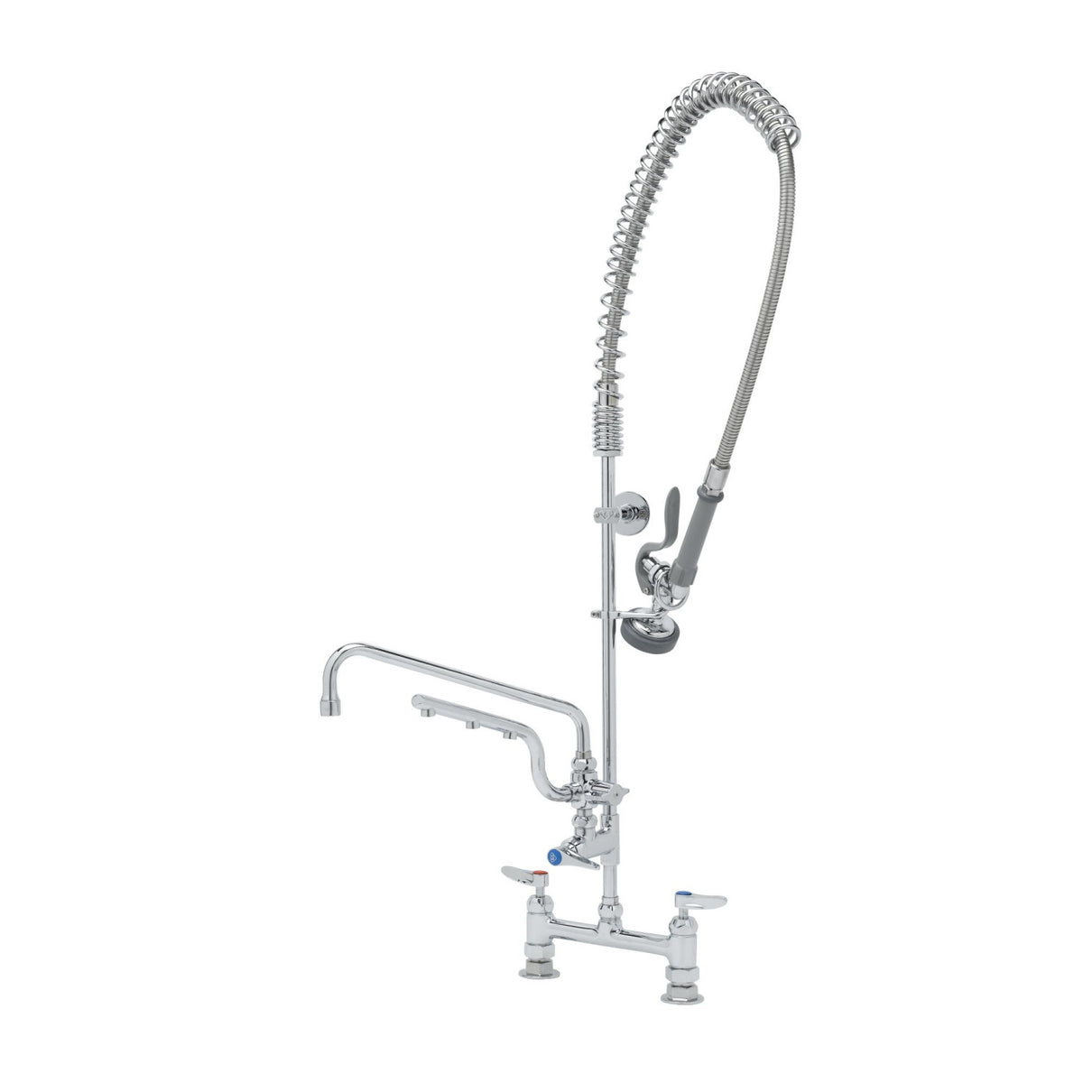 T&S ULTRARINSE PRU w/ 8" Deck Mount Mixing Faucet, Quarter-Turn Cerama w/ Check Valves, Levers, Add-On Faucet w/ 12" Swing Nozzle, 10" ULTRARINSE 1.5 GPM Sprayer Arm, 1.15 GPM Spray Valve & 1/2" NPT Female Inlets