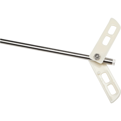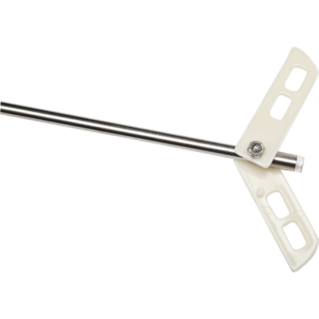 The blades fold down allowing for easy insertion into a barrel or even a glass carboy. Ideal for mixing, stirring wine and works great as a degasser. As soon as you turn your drill on the blades expand to create a powerful stirring action. We do not recommend using in a carboy that is topped full because the stirrer displaces too much liquid and also creates a vortex that will send wine out the top. In these cases a hollow racking cane works exceptionally well. Works with 3/8" or larger drills.