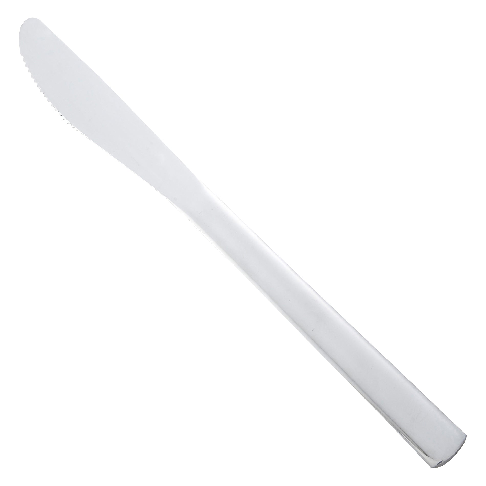 Create an elevated table setting with this commercial-grade 8.5" dinner knife, part of the Windsor flatware collection by Winco. This versatile dinner knife is ideal for main courses or as a general purpose table knife.The Windsor flatware collection features a smooth contour design making it an ideal choice for a contemporary setting. Forged from heavy-duty stainless steel, this medium weight dinner knife is designed to withstand daily use in a commercial foodservice environment making it an ideal choice for hotels, cafes and restaurants.Each piece of the Windsor flatware collection is dishwasher safe for both residential and commercial dishwashers. The elegant mirror finish is designed to last and is resistant to pitting or dulling, even after repeated washes.