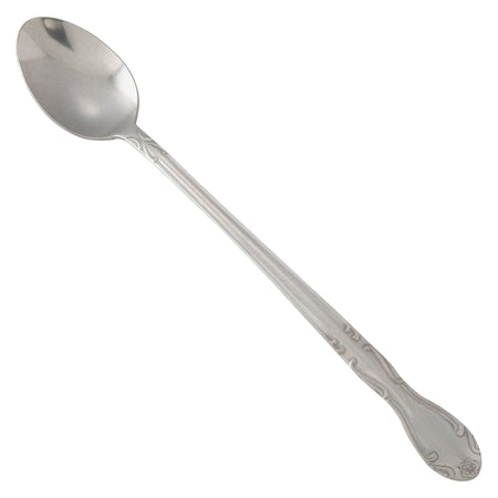 Create an elevated table setting with this commercial-grade 8" iced tea spoon, part of the Elegance flatware collection by Winco. This iced tea spoon features a long handle ideal for with tall drinkware when serving iced tea, parfaits, desserts and milkshakes.The Elegance flatware collection features embossed floral embellishments with a single motif at the handle tip adding a modern touch to traditional flatware patterns. Forged from heavy-duty stainless steel, this heavyweight iced tea spoon is designed to withstand daily use in a commercial foodservice environment making it an ideal choice for hotels, cafes and restaurants.Each piece of the Elegance flatware collection is dishwasher safe for both residential and commercial dishwashers. The elegant mirror finish is designed to last and is resistant to pitting or dulling, even after repeated washes.
