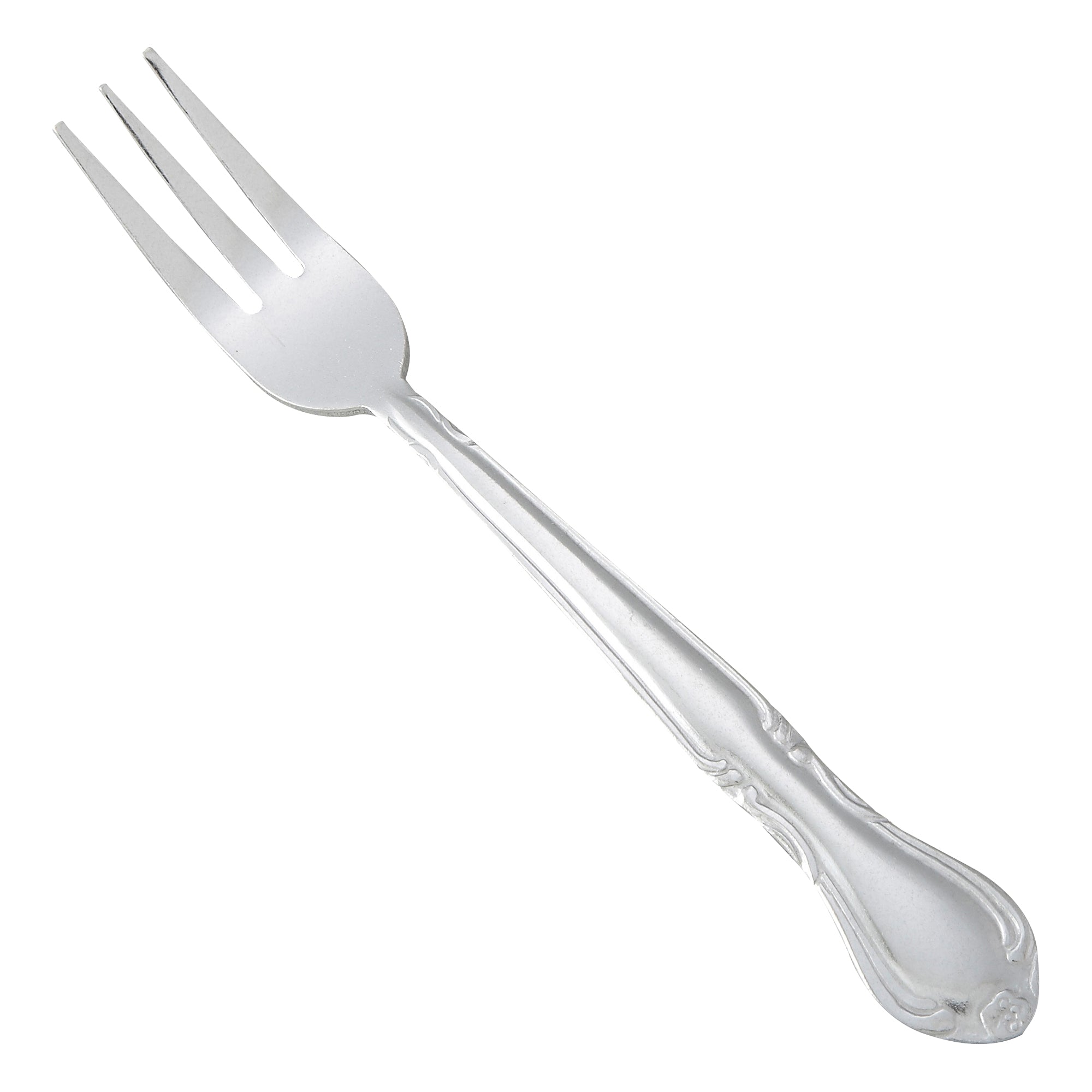 Create an elevated table setting with this commercial-grade 6.25" oyster fork, part of the Elegance flatware collection by Winco. This specially designed oyster fork is ideal for serving oysters, seafood and other hour d’oeuvres.The Elegance flatware collection features embossed floral embellishments with a single motif at the handle tip adding a modern touch to traditional flatware patterns. Forged from heavy-duty stainless steel, this heavyweight oyster fork is designed to withstand daily use in a commercial foodservice environment making it an ideal choice for hotels, cafes and restaurants.Each piece of the Elegance flatware collection is dishwasher safe for both residential and commercial dishwashers. The elegant mirror finish is designed to last and is resistant to pitting or dulling, even after repeated washes.