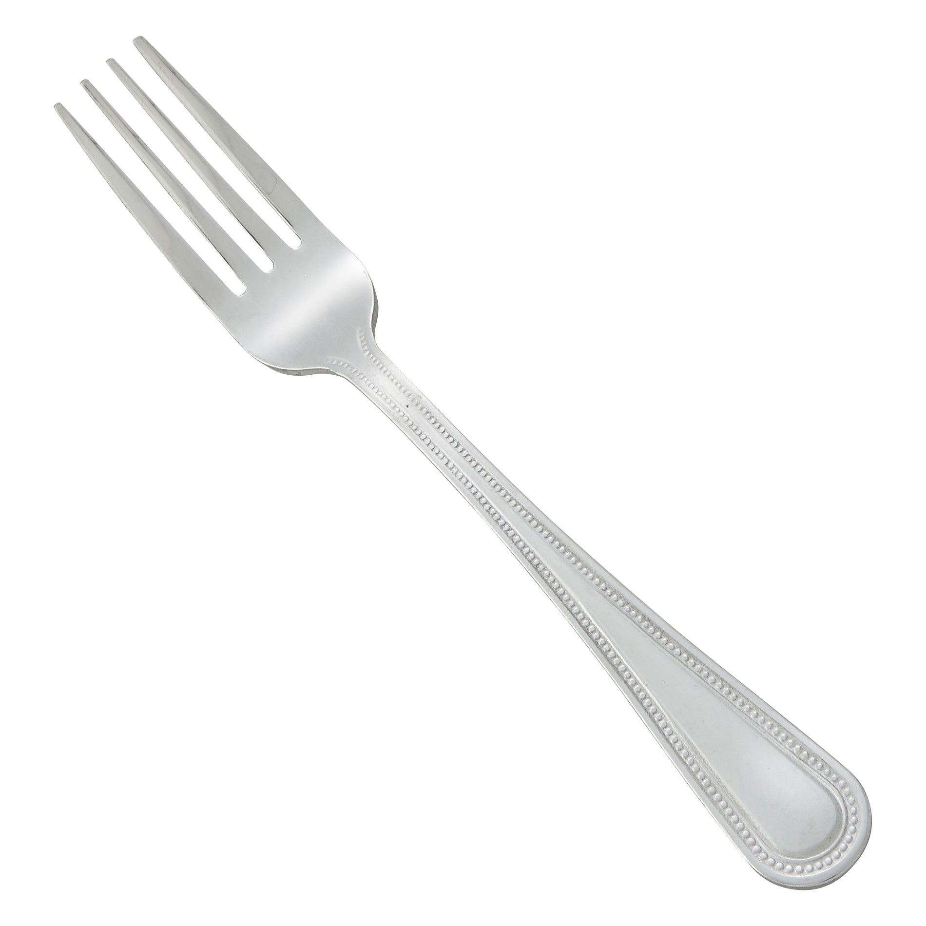 Create an elevated table setting with this commercial-grade 8.5" dinner fork, part of the Dots flatware collection by Winco. This versatile dinner fork is ideal for main courses or as a general purpose dining fork.The Dots pattern features simple lines and elegant beading details around the handle and neck adding a subtle retro flare to any tabletop. Forged from heavy-duty stainless steel, this heavyweight dinner fork is designed to withstand daily use in a commercial foodservice environment making it an ideal choice for hotels, cafes and restaurants.Each piece of the Dots flatware collection is dishwasher safe for both residential and commercial dishwashers. The elegant mirror finish is designed to last and is resistant to pitting or dulling, even after repeated washes.