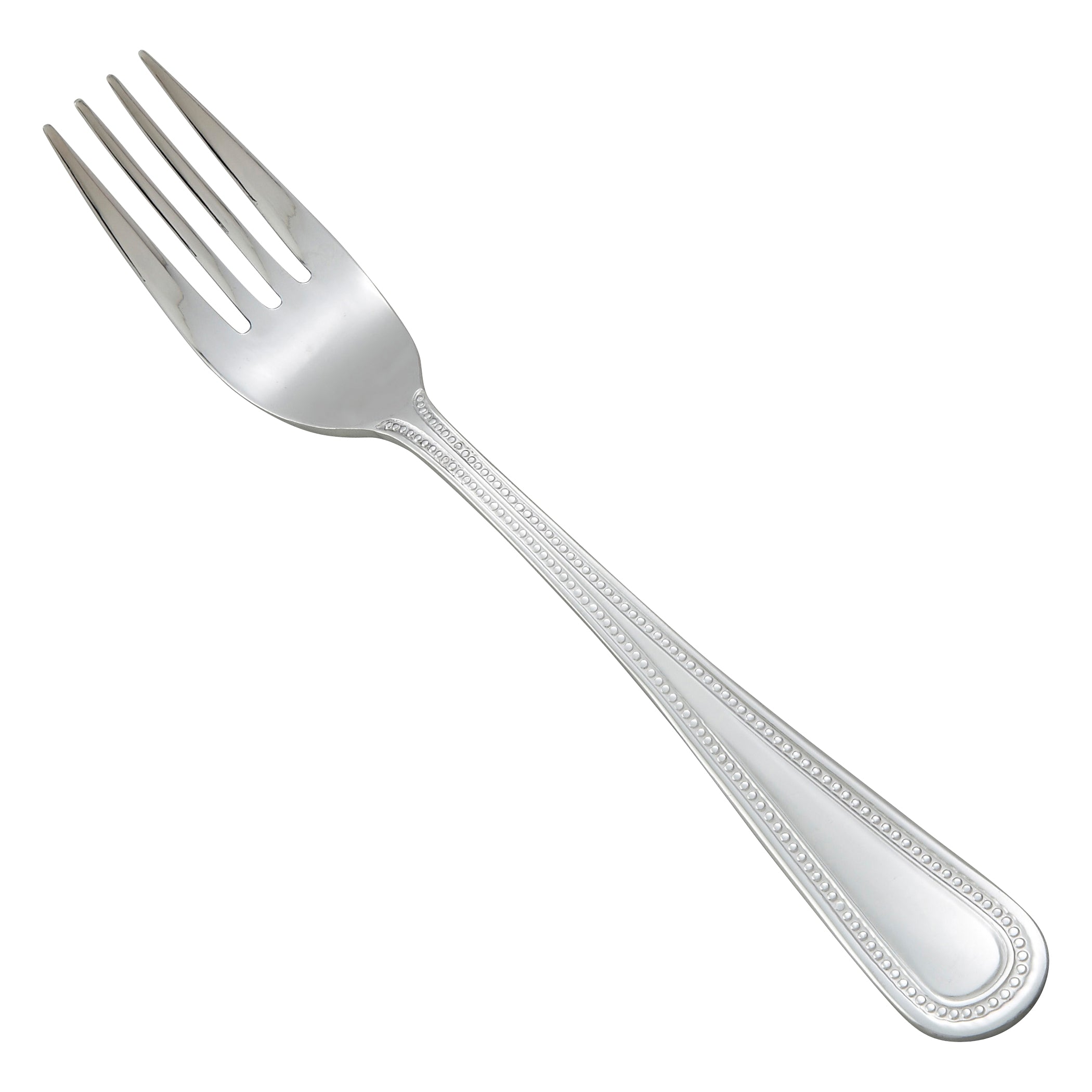 Create an elevated table setting with this commercial-grade 6.5" salad fork, part of the Dots flatware collection by Winco. This specially designed salad fork features wide tines to provide additional leverage for cutting and spearing large vegetables and leafy greens. The Dots pattern features simple lines and elegant beading details around the handle and neck adding a subtle retro flare to any tabletop. Forged from heavy-duty stainless steel, this heavyweight salad fork is designed to withstand daily use in a commercial foodservice environment making it an ideal choice for hotels, cafes and restaurants.Each piece of the Dots flatware collection is dishwasher safe for both residential and commercial dishwashers. The elegant mirror finish is designed to last and is resistant to pitting or dulling, even after repeated washes.