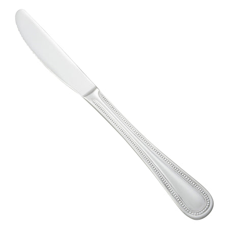Create an elevated table setting with this commercial-grade 9.75" dinner knife, part of the Dots flatware collection by Winco. This versatile dinner knife is ideal for main courses or as a general purpose table knife.The Dots pattern features simple lines and elegant beading details around the handle and neck adding a subtle retro flare to any tabletop. Forged from heavy-duty stainless steel, this heavyweight dinner knife is designed to withstand daily use in a commercial foodservice environment making it an ideal choice for hotels, cafes and restaurants.Each piece of the Dots flatware collection is dishwasher safe for both residential and commercial dishwashers. The elegant mirror finish is designed to last and is resistant to pitting or dulling, even after repeated washes.
