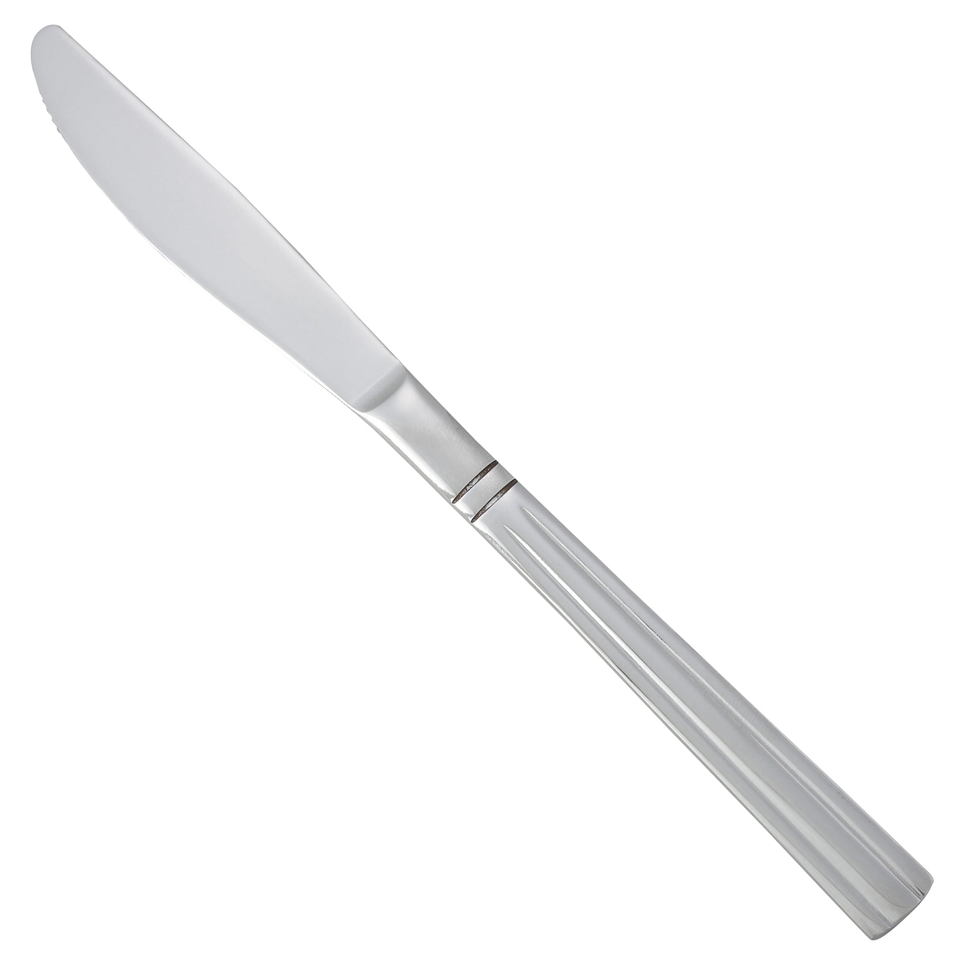 Create an elevated table setting with this commercial-grade 9.75" dinner knife, part of the Regency flatware collection by Winco. This versatile dinner knife is ideal for main courses or as a general purpose table knife.The Regency flatware collection features distinctive column lines on the handle adding an aire of modern sophistication to any tabletop. Forged from heavy-duty stainless steel, this heavyweight dinner knife is designed to withstand daily use in a commercial foodservice environment making it an ideal choice for hotels, cafes and restaurants.Each piece of the Regency flatware collection is dishwasher safe for both residential and commercial dishwashers. The elegant mirror finish is designed to last and is resistant to pitting or dulling, even after repeated washes.