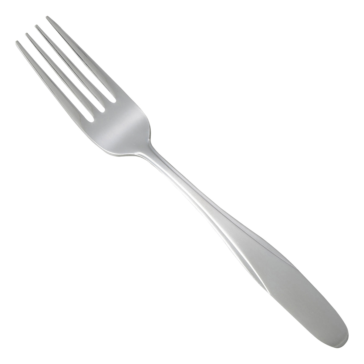 Create an elevated table setting with this commercial-grade 8.5" dinner fork, part of the Manhattan flatware collection by Winco. This versatile dinner fork is ideal for main courses or as a general purpose dining fork.The Manhattan flatware collection features subtle grooves from the handle neck to the mid-section for a flared handle that is easy to hold. Forged from heavy-duty stainless steel, this heavyweight dinner fork is designed to withstand daily use in a commercial foodservice environment making it an ideal choice for hotels, cafes and restaurants.Each piece of the Manhattan flatware collection is dishwasher safe for both residential and commercial dishwashers. The elegant mirror finish is designed to last and is resistant to pitting or dulling, even after repeated washes.