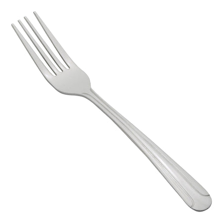 Create an elevated table setting with this commercial-grade 7.25" dinner fork, part of the Dominion flatware collection by Winco. This versatile dinner fork is ideal for main courses or as a general purpose dining fork.The Dominion pattern features an art deco design with two lines down the length of the handle for a sophisticated addition to any tabletop. Forged from heavy-duty stainless steel, this heavyweight dinner fork is designed to withstand daily use in a commercial foodservice environment making it an ideal choice for hotels, cafes and restaurants.Each piece of the Dominion flatware collection is dishwasher safe for both residential and commercial dishwashers. The elegant mirror finish is designed to last and is resistant to pitting or dulling, even after repeated washes.