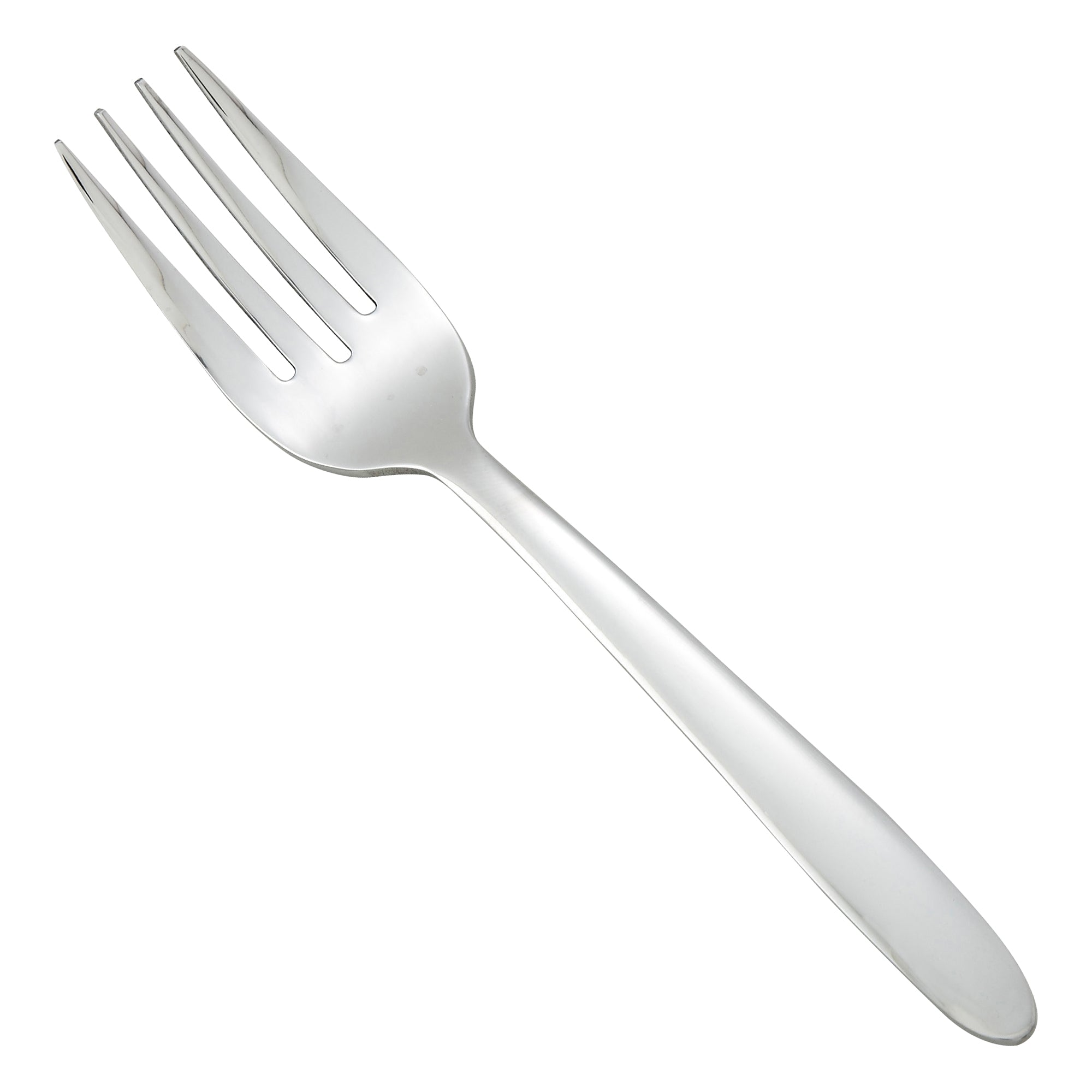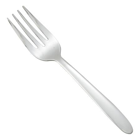 Create an elevated table setting with this commercial-grade 7" salad fork, part of the Flute flatware collection by Winco. This specially designed salad fork features wide tines to provide additional leverage for cutting and spearing large vegetables and leafy greens. The Flute flatware collection features elongated oval handles with a smooth finish for a minimal yet modern silhouette that compliments any tabletop. Forged from heavy-duty stainless steel, this heavyweight salad fork is designed to withstand daily use in a commercial foodservice environment making it an ideal choice for hotels, cafes and restaurants.Each piece of the Flute flatware collection is dishwasher safe for both residential and commercial dishwashers. The elegant mirror finish is designed to last and is resistant to pitting or dulling, even after repeated washes.