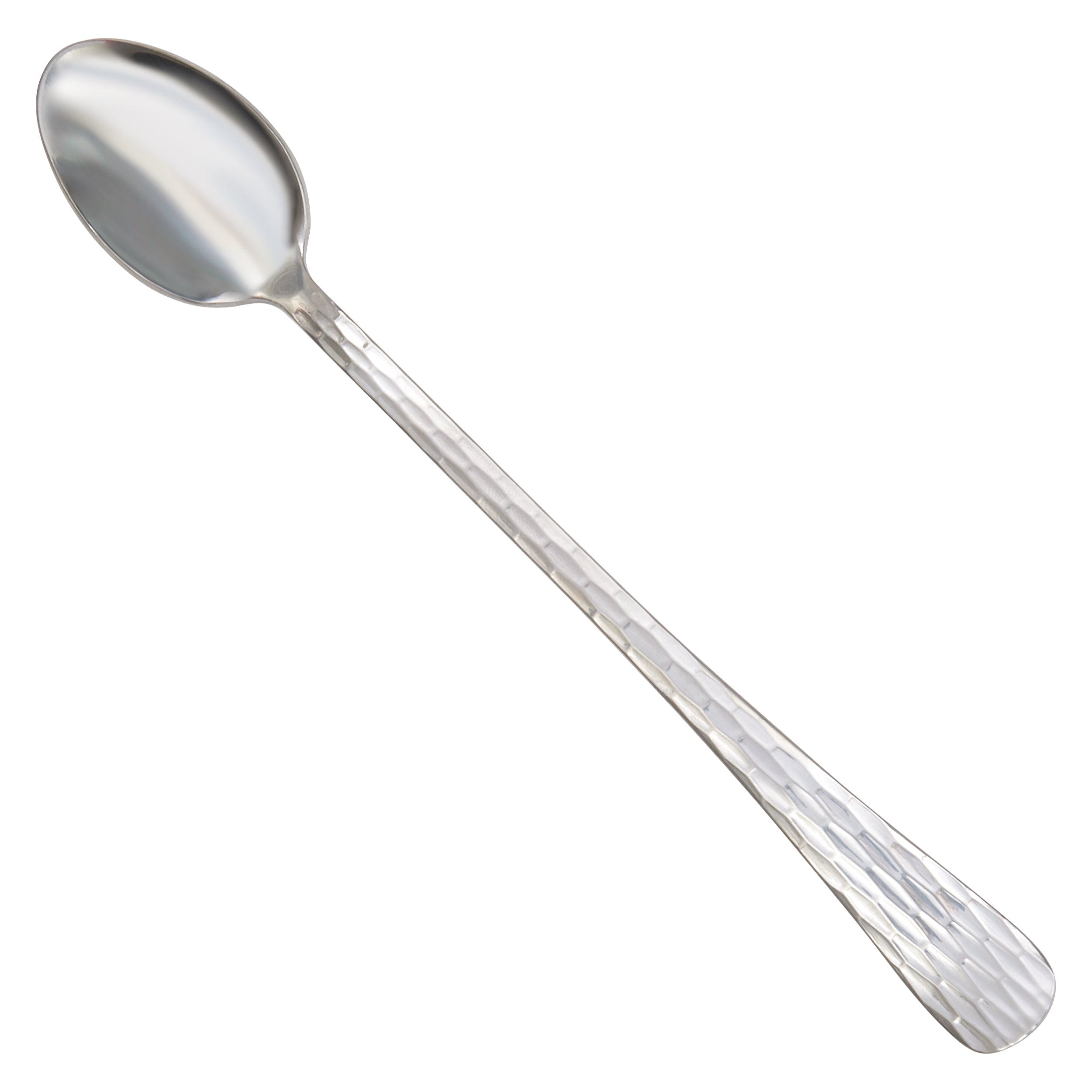 • Long-Handled – Features a long handle ideal for with tall drinkware when serving iced tea, parfaits, desserts and milkshakes • Caspian Pattern - The Caspian pattern invites light to dance across the hammered ripples, a versatile choice for any setting. • Commercial-Grade – Made from commercial grade stainless steel designed to withstand daily use in a commercial environment ideal for hotels, restaurants and cafes • Medium Weight – Forged from 18/0 stainless steel highly resistant to bending and corrosion for long-lasting durability • Dishwasher Safe – Approved for use in commercial dishwashers